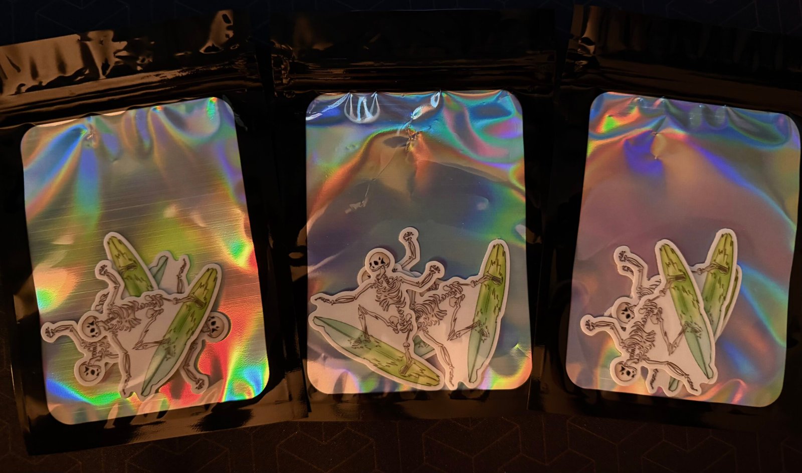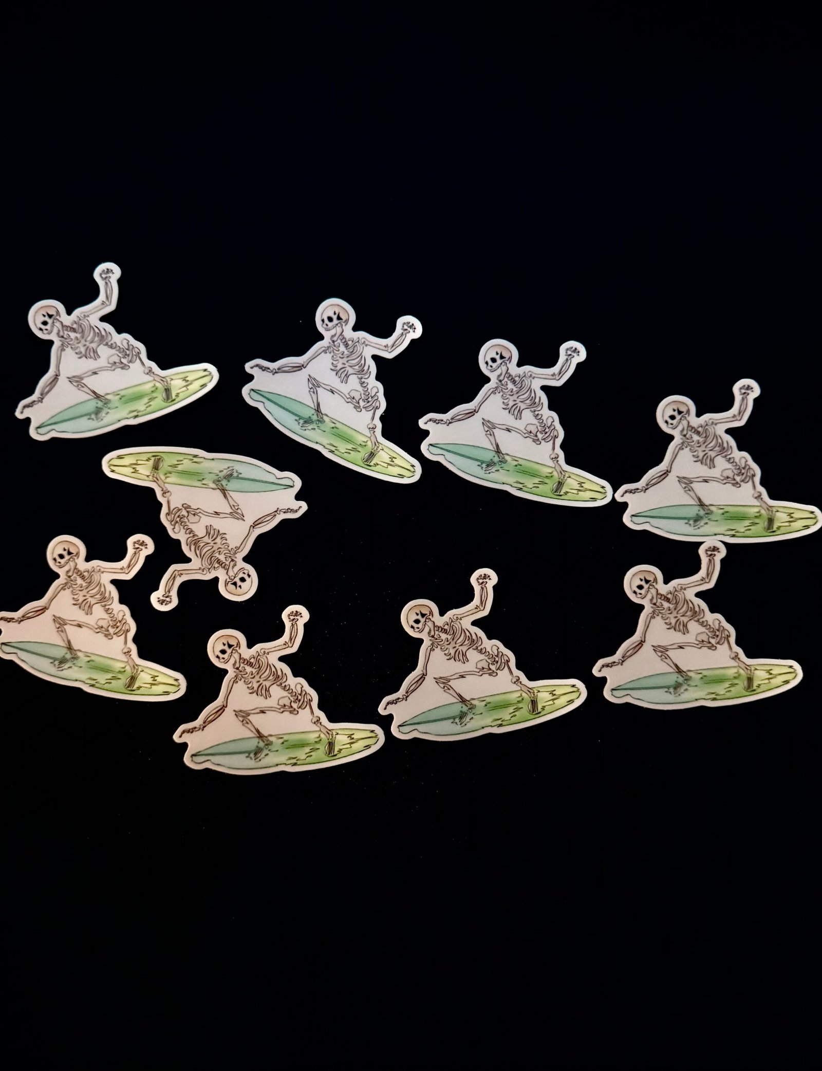 The Stikazzz Surfin’ Bones die cut 2×2 sticker.